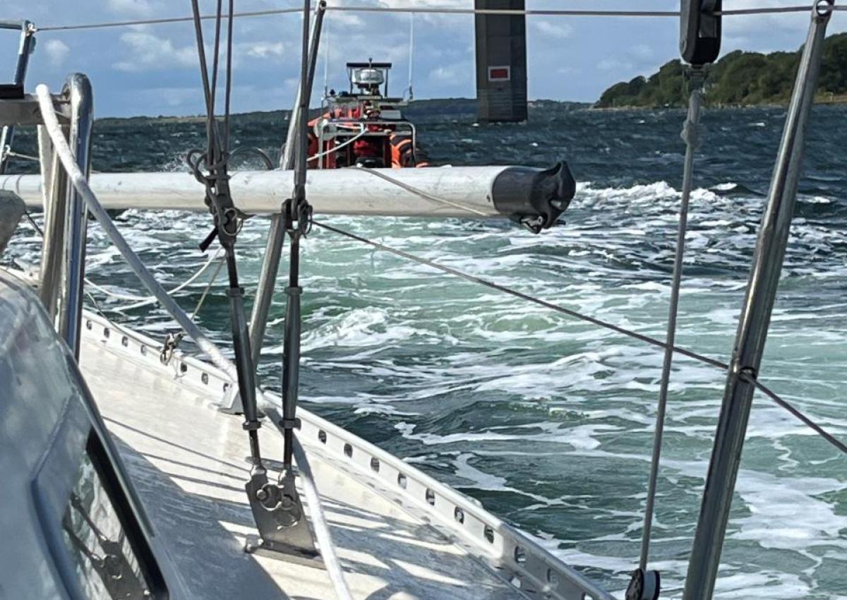 30 fods sejlbåd med motorproblemer ved Farø