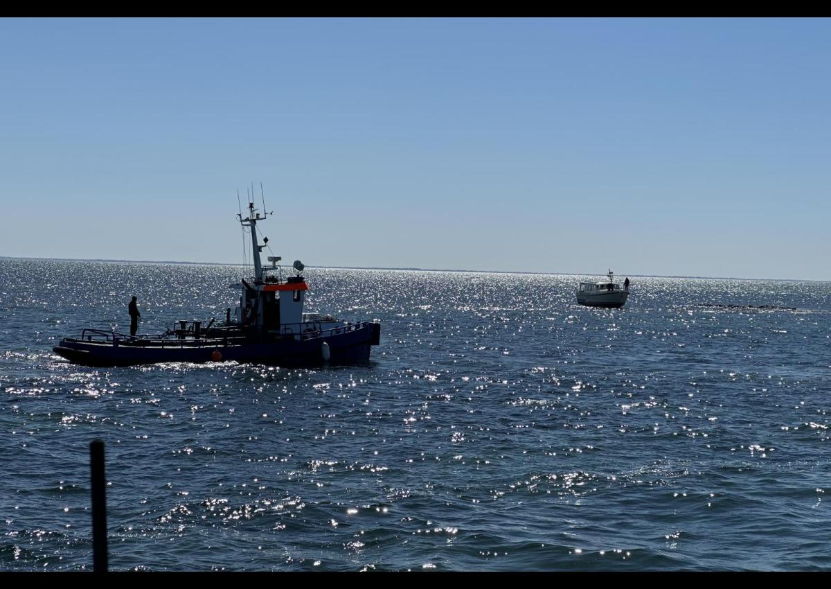 Assens skibsværft havde påtaget sig opgaven med at trække den motorbåd fri, som vi måtte opgive i går.