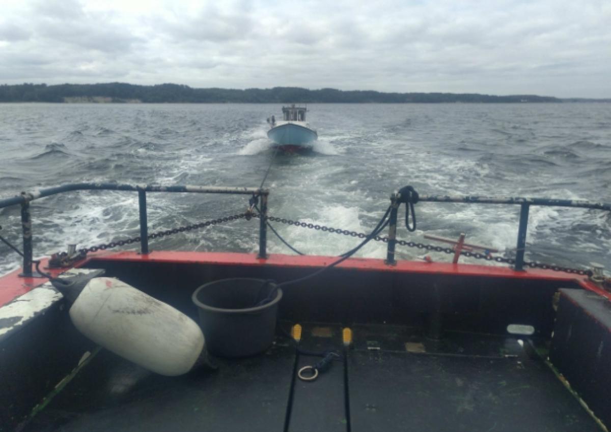 Vi får et opkald fra en havarist der ligger i en fiskerjolle med styrehus, med motorproblemer mellem Revshalen og Sønderballe. Vi tager ham med ind til Sønderballe.