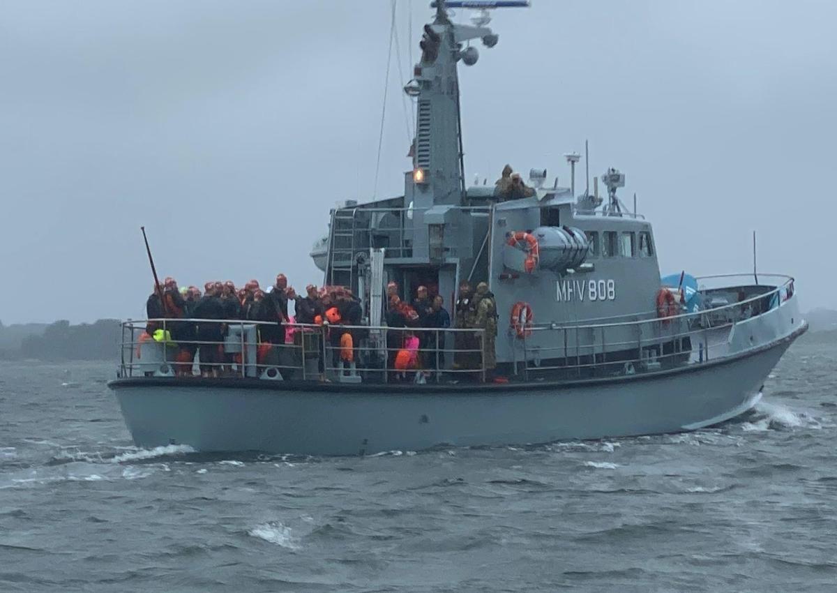 Da uvejret satte ind, blev det ganske alvorligt. Mange svømmere skulle bjerges hurtigst muligt. Vi samlede 15 svømmere op fra havet og sejlede yderligere ca. 70 forkomne svømmere fra Bjørnø til Marinehjemmeværnets skib, hvor de blev talt og registreret.